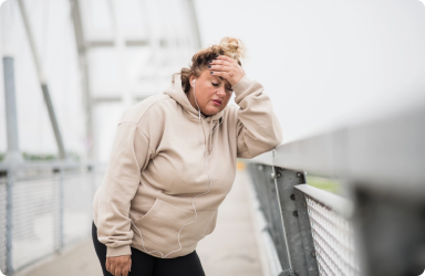 La presión arterial aumenta y pueden producirse apnea del sueño y problemas respiratorios, especialmente al caminar rápido o durante largos períodos de tiempo.